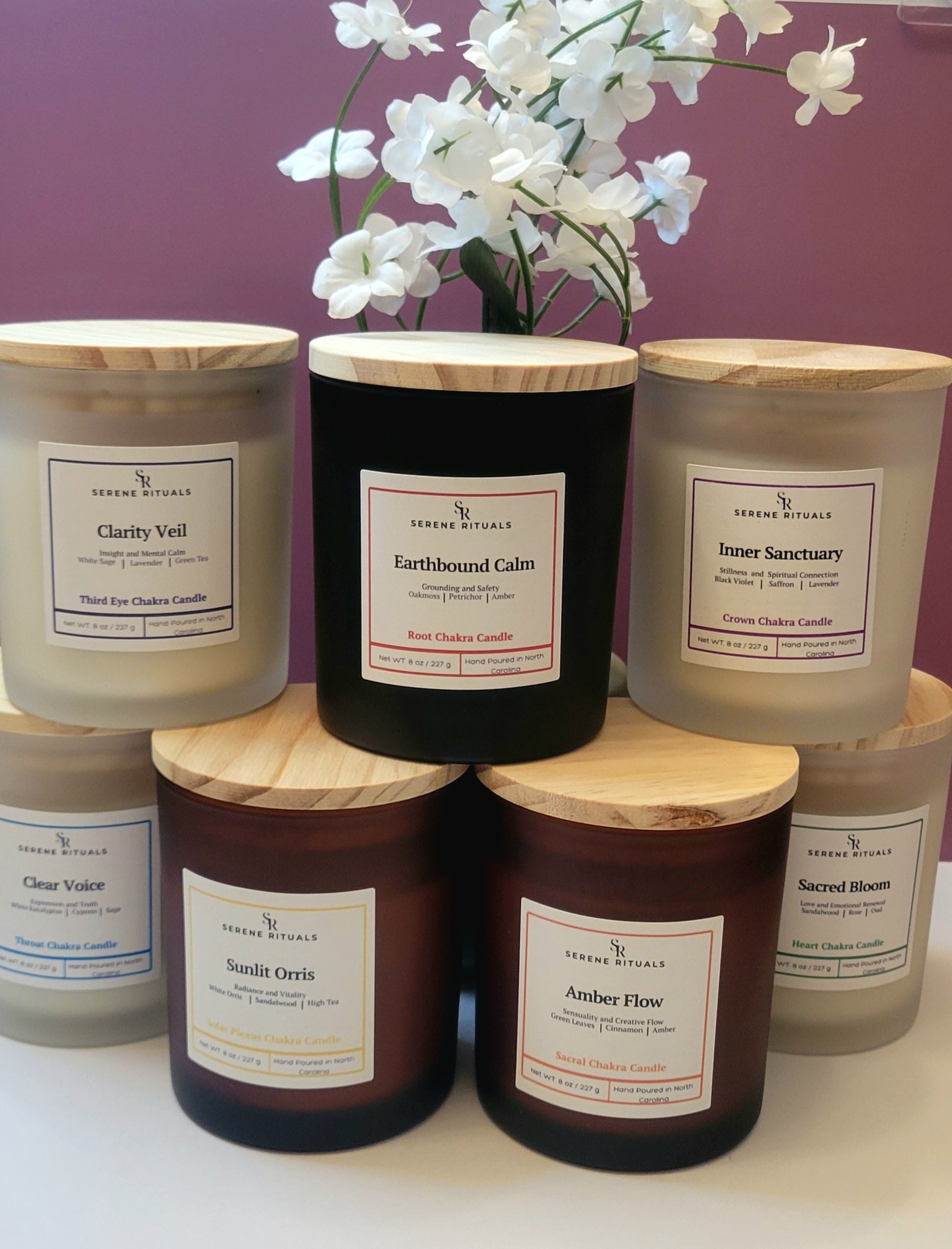 Bring balance to your entire energetic system with the complete Serene Rituals Chakra Candle Collection. Each candle is artfully crafted to correspond with one of the seven chakras—featuring carefully curated scents, gemstone paired, and affirmations to support spiritual alignment, emotional healing, and mindful rituals.